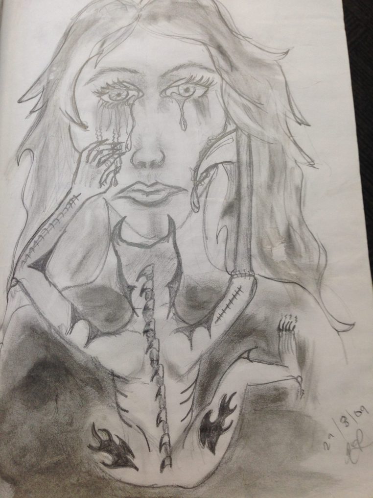 Gallery 08 Saturday Apr 2017 Original size at 2448 × 3264 ≈ Leave a comment The monster on my back 2009. Kali’s early artwork was often in black and white. I believe this image depicts her father as a constant torturer in her life even when he is in gaol. Like Loading...