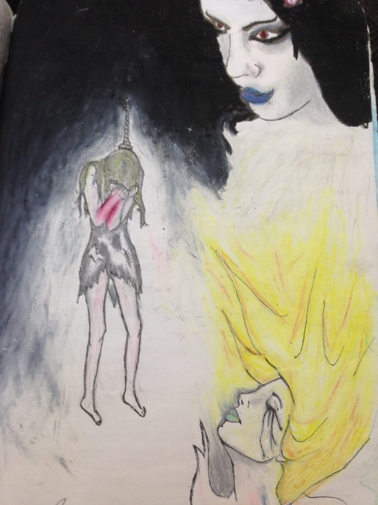 Gallery 08 Saturday Apr 2017 Original size at 2448 × 3264 ≈ Leave a comment Stuck in Limbo 2009: Some colour starts to enter the artwork. Kali depicts herself hanging helplessly while other people or aspects of herself look on. Like Loading...