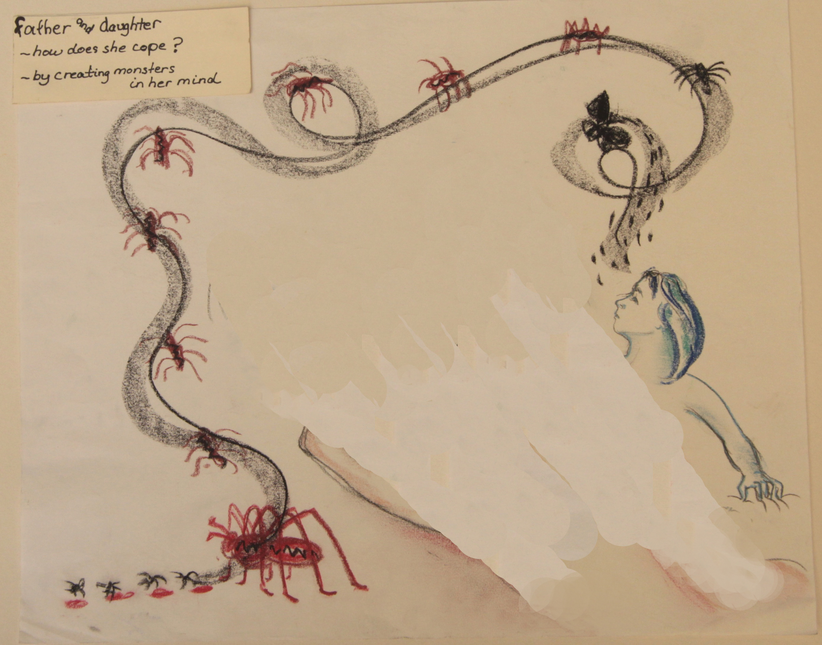 Gallery 14 Wednesday Jan 2015 Original size at 2780 × 2183 ≈ Leave a comment She just lies there dissociated while he does it. But to cope, she turns the experience/memories into monsters and creepy crawlies that will haunt her for years. [edited for public view] Like Loading...