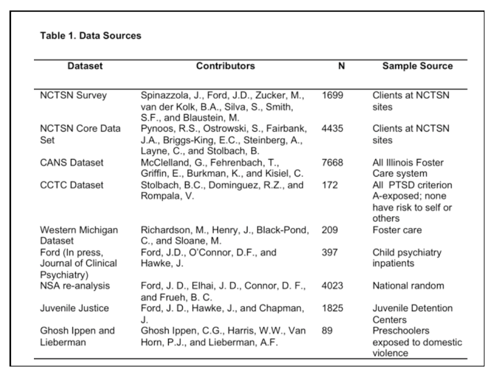 A survey of 1,699 children receiving trauma-focussed treatment . . . . showed that the vast majority (78%) was exposed to multiple and/or prolonged interpersonal trauma. Less than a quarter met diagnostic criteria for PTSD. Fewer than 10% were exposed to serious accidents or medical illness. Most children exhibited posttraumatic sequelae not captured by PTSD: at least 50% had significant disturbances in affect regulation; attention & concentration; negative self-image; impulse control; aggression and risk taking.