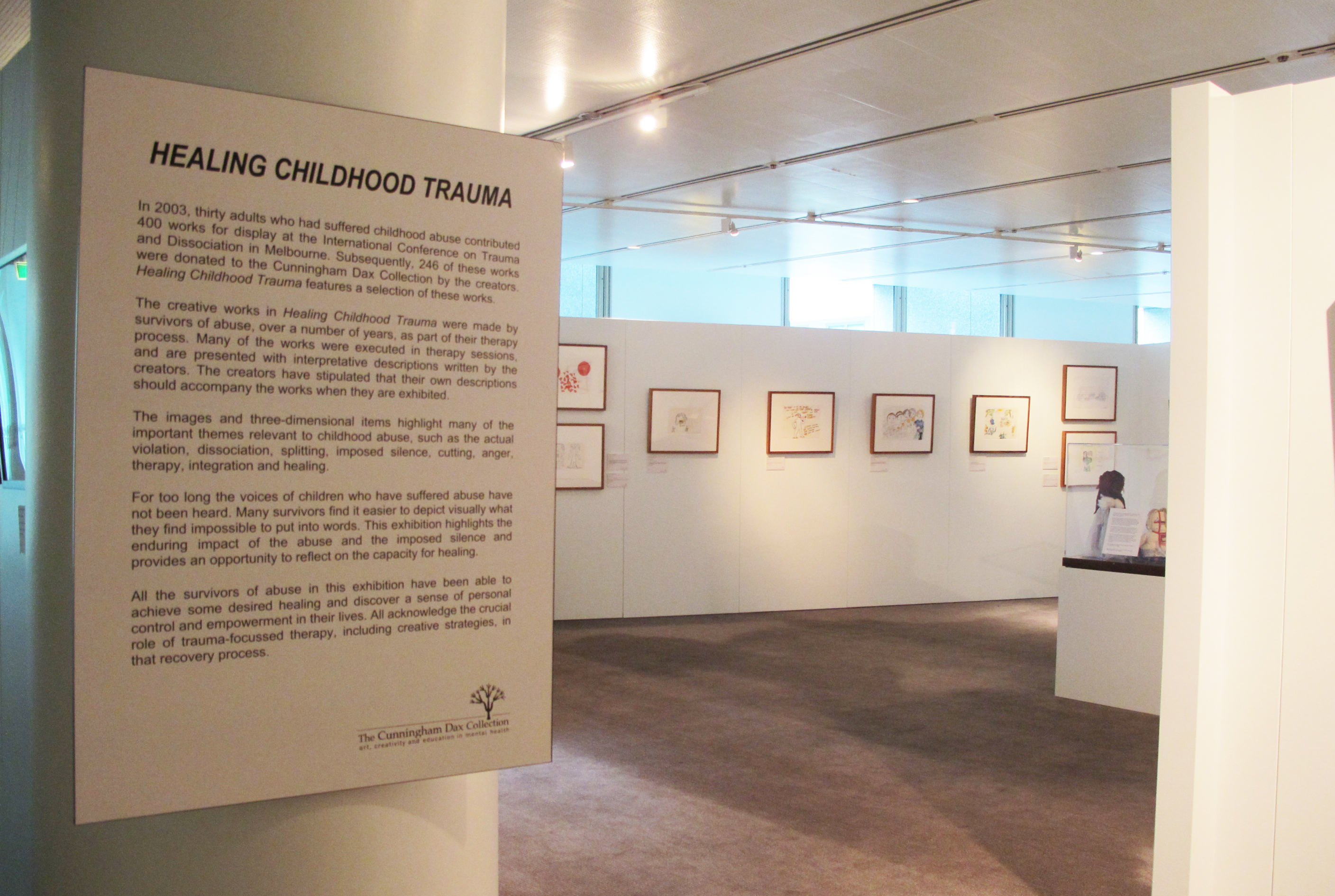 The last major exhibition of the Childhood Abuse Collection, titled “Healing Childhood Trauma”, was presented at Parliament House in Canberra, for four weeks.